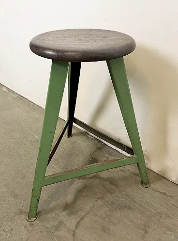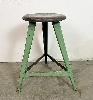 Sgabello da laboratorio industriale verde, anni '60