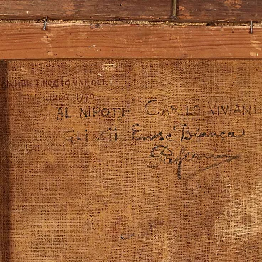 Olio su tela. Scuola nord-italiana del XVIII secolo. Venere, addormentata è raffigurata qui solamente con il busto, un seno scoperto, i capelli ingioiellati, il capo reclinato su un cuscino che si intuisce soltanto, la mano languidamente appoggiata al collo, in una posa che risulta sensuale anche nell' abbandono del sonno. Tale rappresentazione della dea guarda allo stesso soggetto realizzato da Guido Reni (1575 -1642) e poi successivamente ripreso più volte. Sul retro della tela è presente scritta attributiva a Giambettino Cignaroli (1706 -1770) , che effigiò in modo analogo una Psiche dormiente. IL dipinto è presentato in cornice di metà '900.