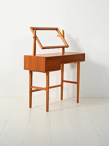 Toeletta scandinava in teak con specchio reclinabile, anni ’60
