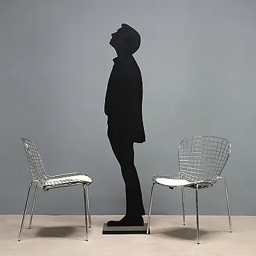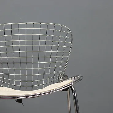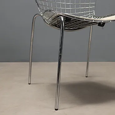 Set di dieci sedie vintage con struttura in metallo cromato, cuscini originali nei toni del bianco.