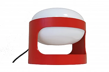 Lampada da tavolo impilabile in plastica ABS rossa modello KD27 disegnata da Joe Colombo per Kartell nel 1964. Lampada fuori produzione, condizioni vintage eccellenti.