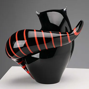 Gatto in vetro nero e rosso di Seguso, '900