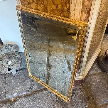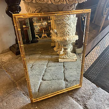 Specchio in ottone a forma di bambù Hollywood Regency, anni '70