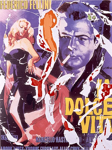 Serigrafia a colori e collage di Mimmo Rotella, La Dolce Vita