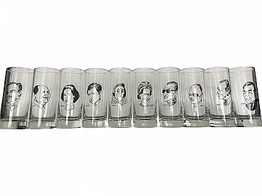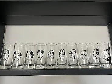 10 bicchieri da drink con ritratti, anni '70