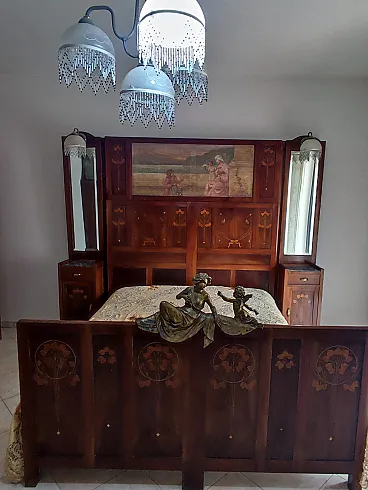 Camera da Letto Liberty in noce con intarsi, primi ’900