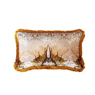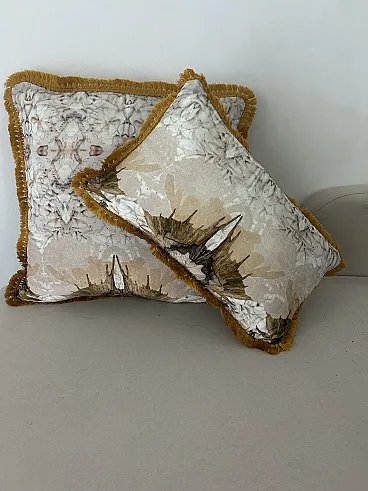 Cuscino decorativo con motivo ornato e frange
