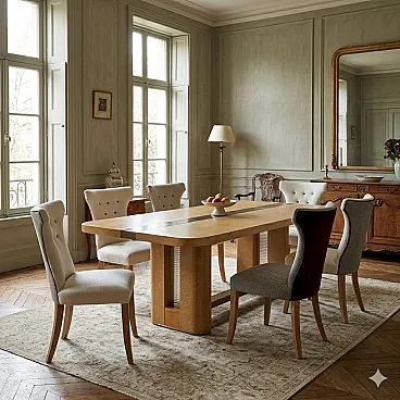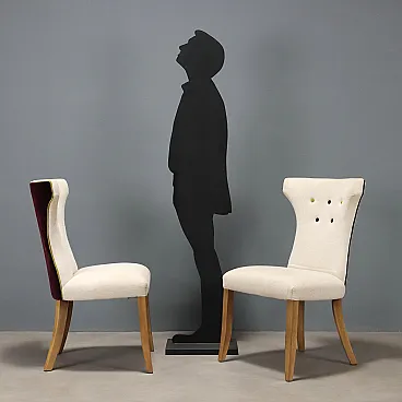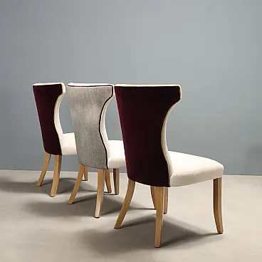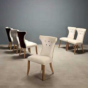 6 Sedie con seduta e schienale imbottiti e rivestiti in tessuto, '900