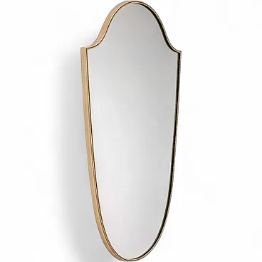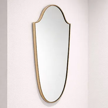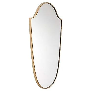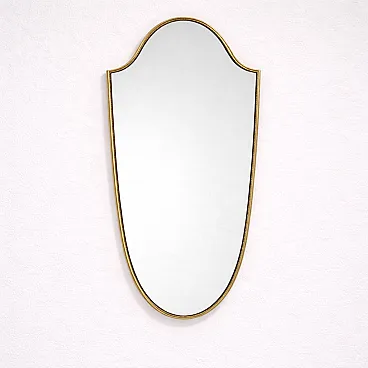 Specchio in ottone a forma di scudo stile Gio Ponti, anni ’50