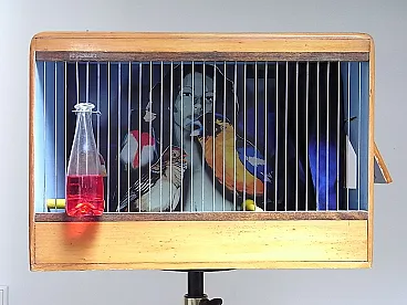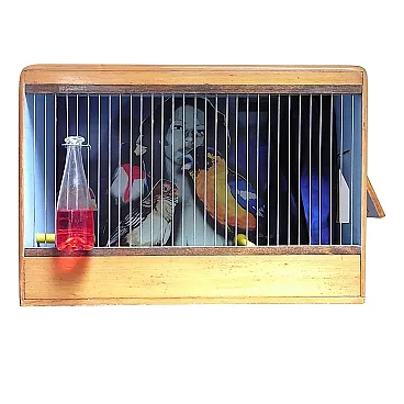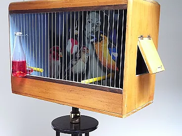 Gabbia per uccelli in legno e metallo, anni 2000