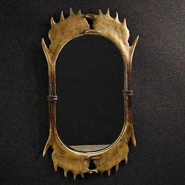 Specchiera ovale francese con corna in resina, anni '80
