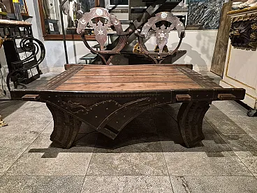 Tavolino da salotto in legno e ferro, India, di inizio '900 1