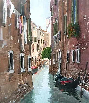 Un canale a Venezia o Chioggia, acquerello, '900