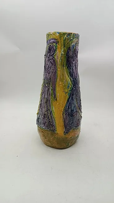 Vaso in maiolica d'arte figurativa di Agostino Pastene, anni '50
