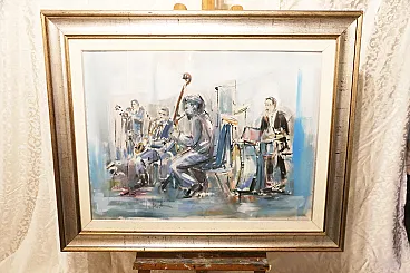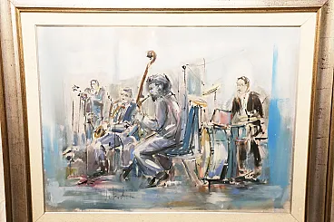 Roberto Andreoli quadro olio su tela musicisti jazz concerto, anni '50