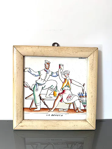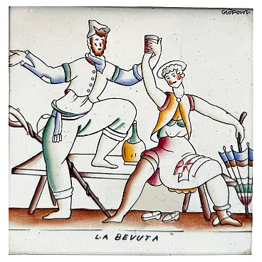 Piastrella La Bevuta di Gio Ponti per Richard Ginori, anni '30