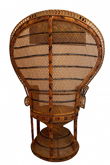 La sedia in rattan Pavone resa iconica dal film Emmanuelle proviene dalla collezione di una signora toscana che l’ha richiesta per il proprio diciottesimo compleanno, nel 1974. La sedia è stata usata solo come oggetto decorativo, ed è quindi in eccellenti condizioni vintage. Il colore è caldo e intatto, tutte le fibre sono in ottime condizioni.