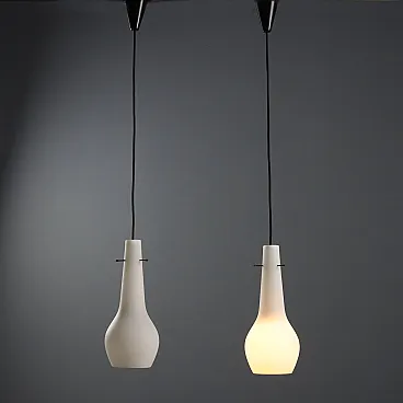 Coppia di lampade in vetro opalino, anni '60
