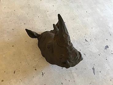Grande trofeo con testa di rinoceronte plasmata in resina