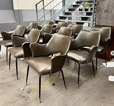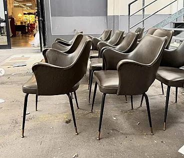 11 Poltroncine in metallo, ottone e similpelle, anni '60