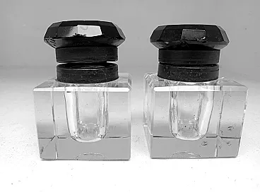 Arte decò inkwells set from years '30 razional fine design in rare black glass