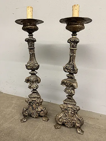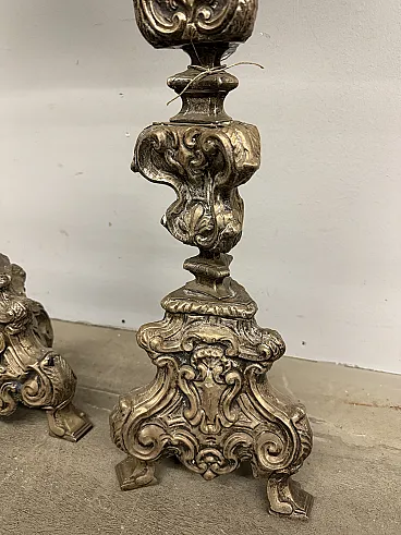 Coppia di candelabri in argento cesellato, '700