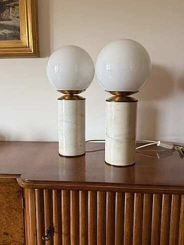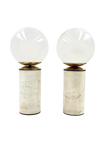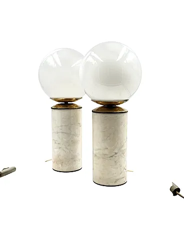 Coppia di lampade da tavolo in marmo e ottone di Lucirhytmo, 1970