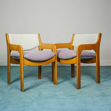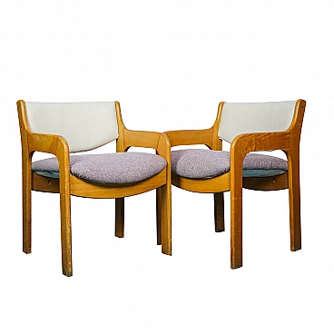 Coppia di sedie in legno e tessuto lilla, anni '70