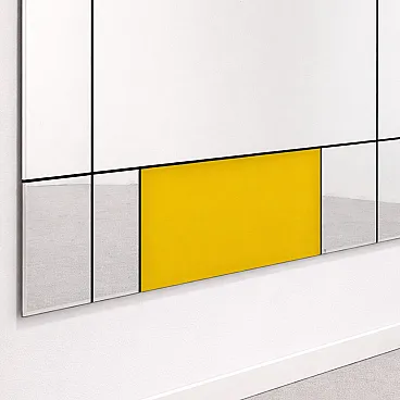 L’effetto complessivo richiama in modo immediato il lessico visivo di Mondrian, trasformando un oggetto funzionale in una presenza decorativa di forte identità grafica. Lo specchio non è soltanto un complemento d’arredo, ma un vero elemento scenografico capace di dialogare con architetture minimali, interni moderni, ambienti postmoderni o spazi dal gusto collezionistico.