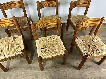 6 Sedie in faggio e paglia intrecciata di Charlotte Perriand, anni '60