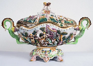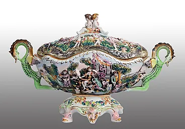 Zuppiera antica in porcellana policroma di Capodimonte Napoli, '900
