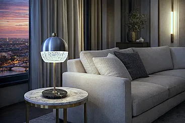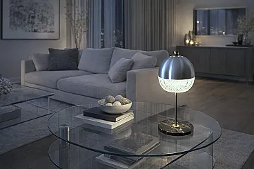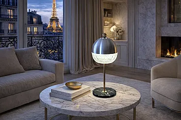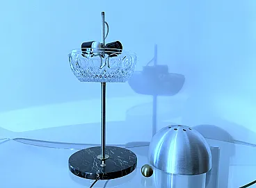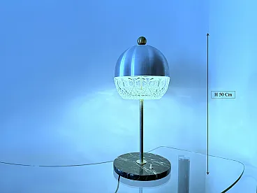 Lampada da tavolo in cristallo, marmo e ottone, anni '60