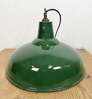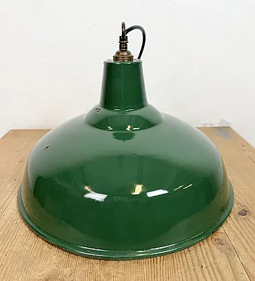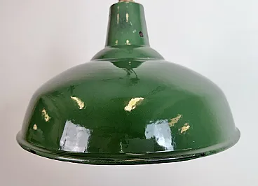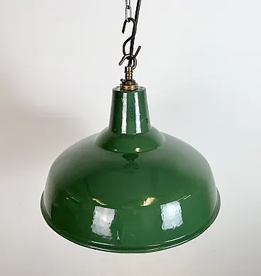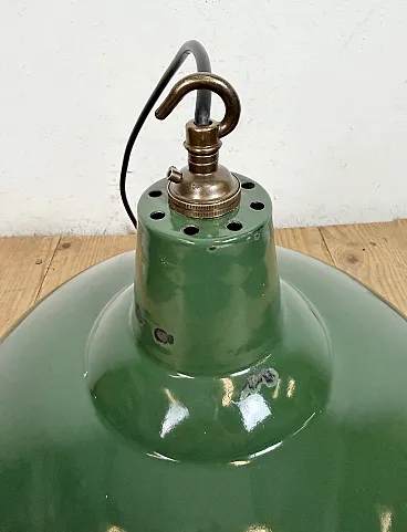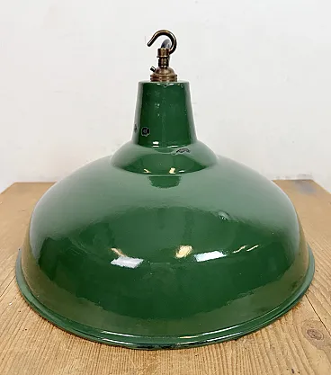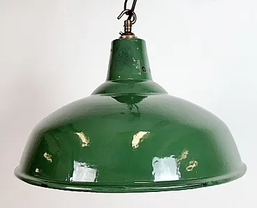 Lampada a sospensione industriale britannica di fabbrica smaltata verde, anni '60