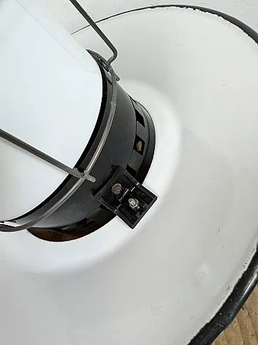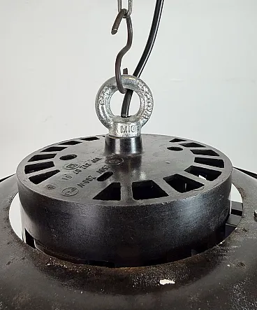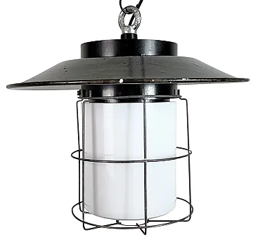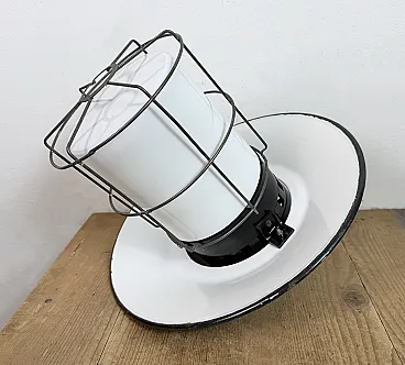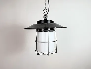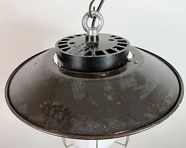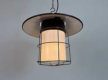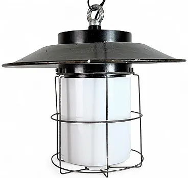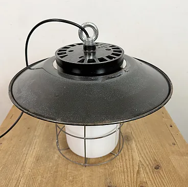 Lampada a sospensione industriale a gabbia in smalto grigio, anni '60