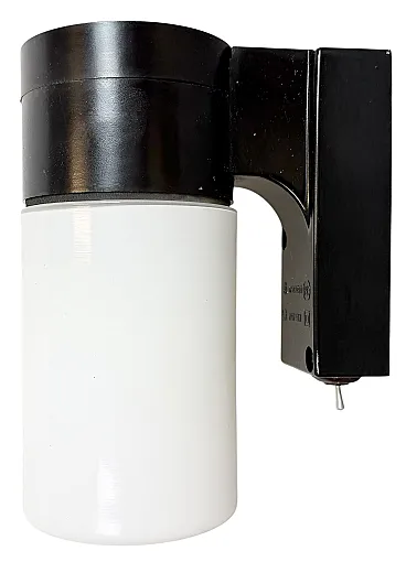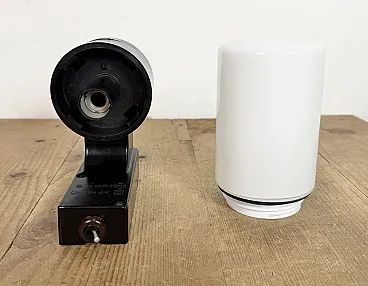 Lampada da parete industriale in bachelite marrone con vetro lattimo, anni '60