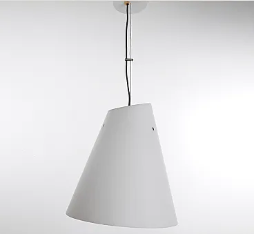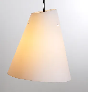 Lampada a sospensione in vetro incamiciato, anni '70