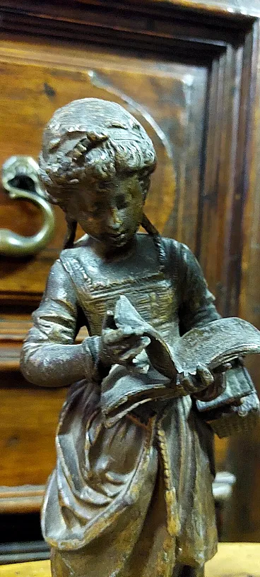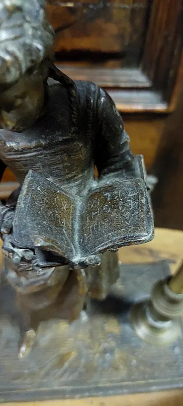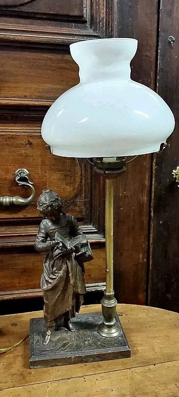 Lampada da tavolo Liberty in vetro da lavoro all'antimonio, primo '900