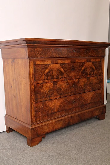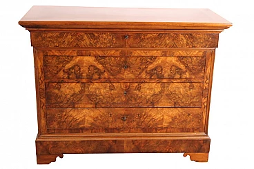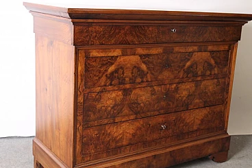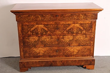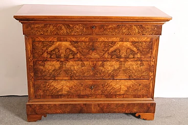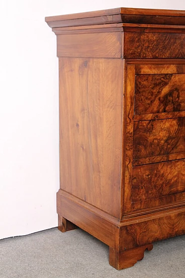 Cassettiera francese in noce e radica Luigi Filippo, 1860