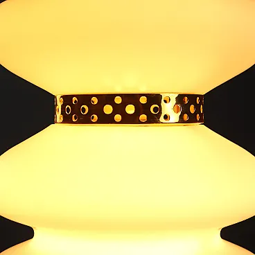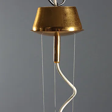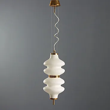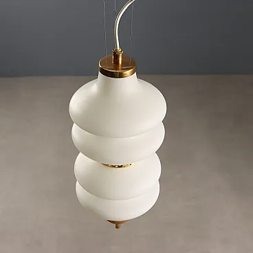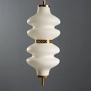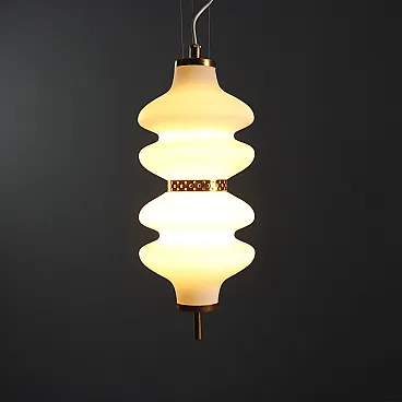 Lampada a sospensione in vetro e ottone, anni '60