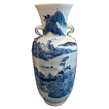 Vaso cinese in ceramica blu e bianca, '900
