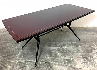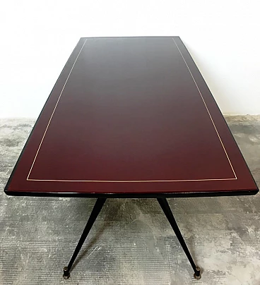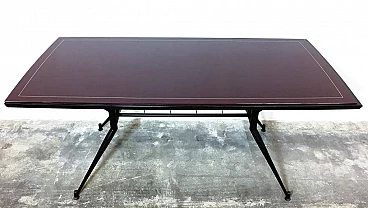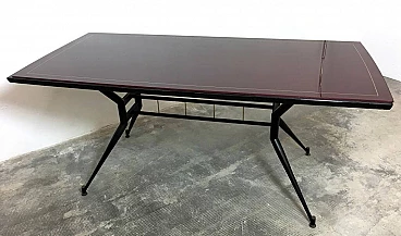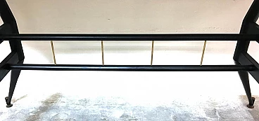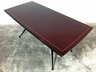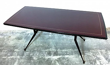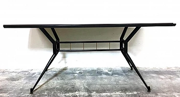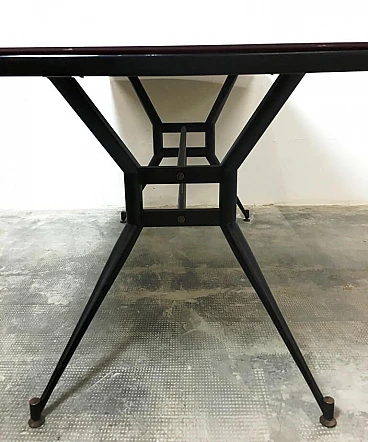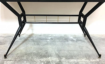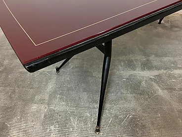 Tavolo in legno con piano in vetro retrodipinto, anni '50