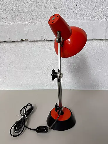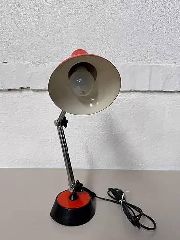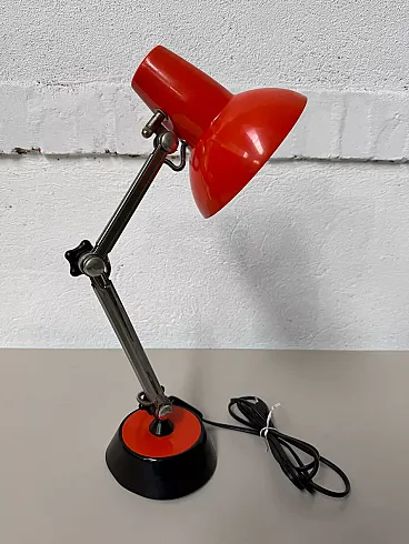 Lampada da scrivania in metallo nero e arancione, anni '70