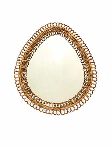 Grande specchio in rattan a forma di unghia di Bonacina, nello stile di Franco Albini. Non presenta alcuna rottura o parte mancante. Il prodotto è in ottime condizioni ma può mostrare naturali segni del tempo.