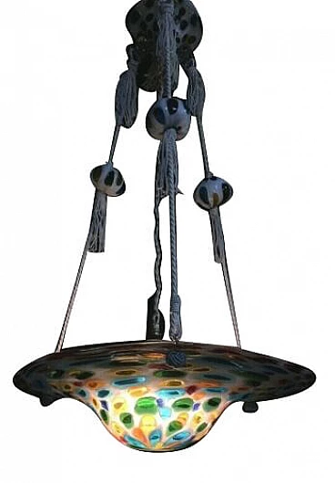 Lampadario con murrine in vetro di Murano di Avem, anni '40