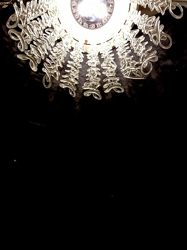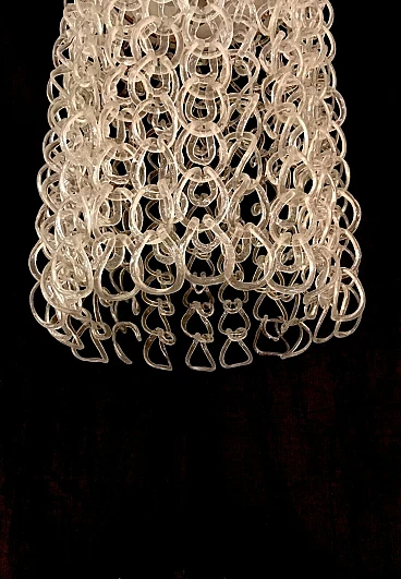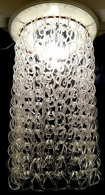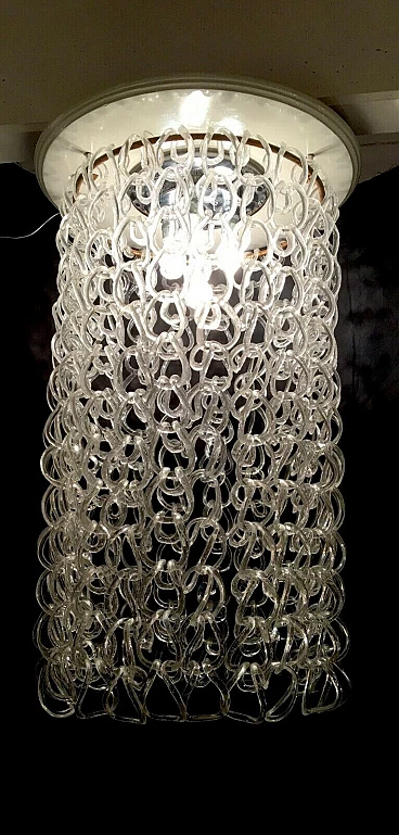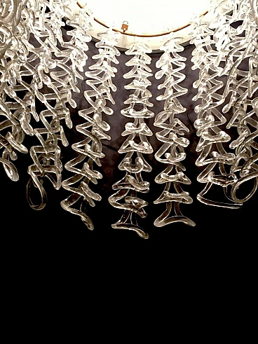 Lampadario Giogali in vetro, legno e ottone di Vistosi, anni '60