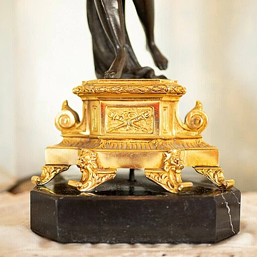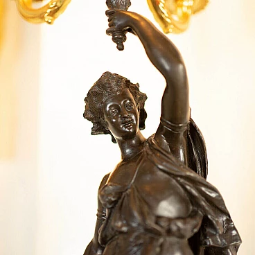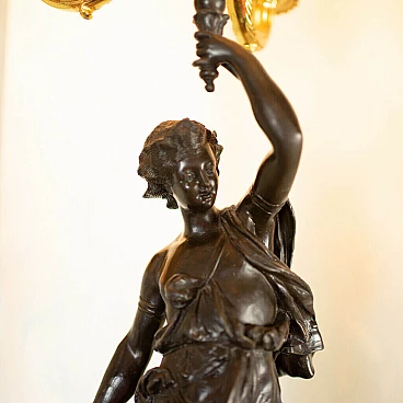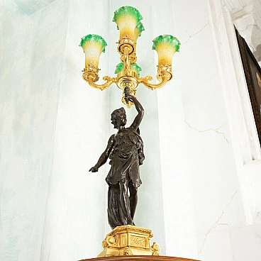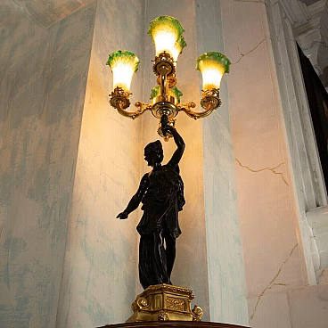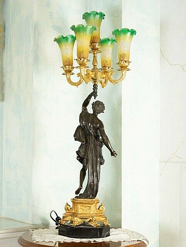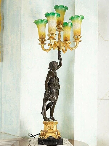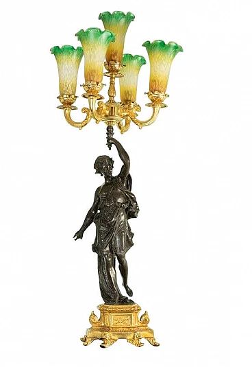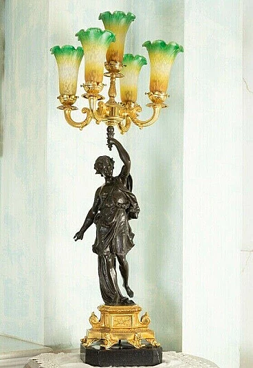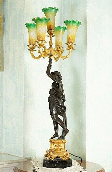 Lampada da tavolo a 5 luci con statua in bronzo, '800