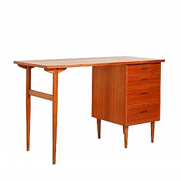 Scrivania di metà secolo in teak dotata di cassetti. La struttura regolare presenta da un lato 4 cassetti di dimensioni diverse e dall’altro due gambe sottili e affusolate. L’impugnatura dei cassetti in legno scolpito così come la struttura a incastro presente tra le gambe e il piano, sono testimonianza delle origini nordiche di questo bel pezzo d’arredo. Se inserita in una sala o in una camera da letto saprà arricchire l’ambiente in modo unico. Buone condizioni. È stata trattata con gommalacca e pura cera d’api con carnauba. Per piacere presta attenzione alle fotografie.