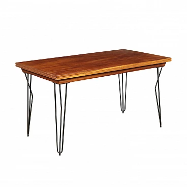Tavolo allungabile in legno impiallacciato mogano e metallo smaltato, anni '60