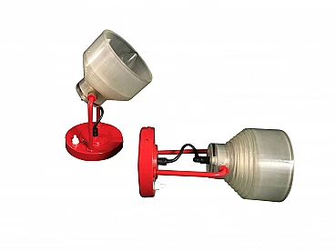 Coppia di applique direzionabili in metallo e vetro di Martinelli Luce, anni '70