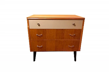 Cassettiera in rovere, anni 50. Primo cassetto in formica.